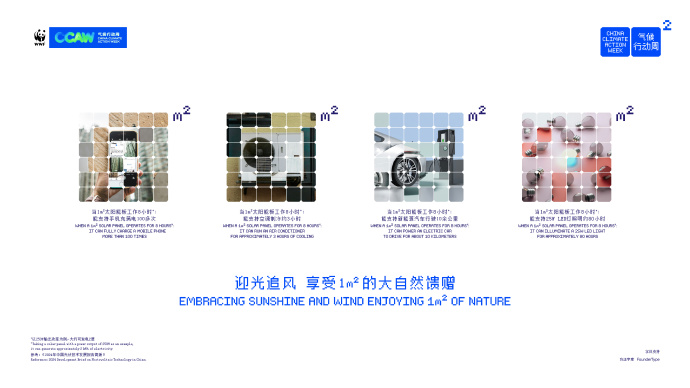 “一平方米”是我們日常生活中(zhōng)常見的計量單位,而“一個平方米的太陽能(néng)闆能(néng)做什麽”正是2024 CCAW系列海報的設計靈感來源。通過将日常生活與一平方米的太陽能(néng)闆發電(diàn)結合,以科(kē)普形式向大家展示一平方米太陽能(néng)闆的實際作(zuò)用(yòng),進而以小(xiǎo)見大,展現無數太陽能(néng)闆彙聚成的可(kě)再生能(néng)源,如何為(wèi)人們帶來清潔美好的生活與未來。
