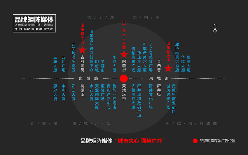 【媒體(tǐ)屬性】濟南央心戶外廣告“戶外燈箱矩陣,品牌形象矩陣”