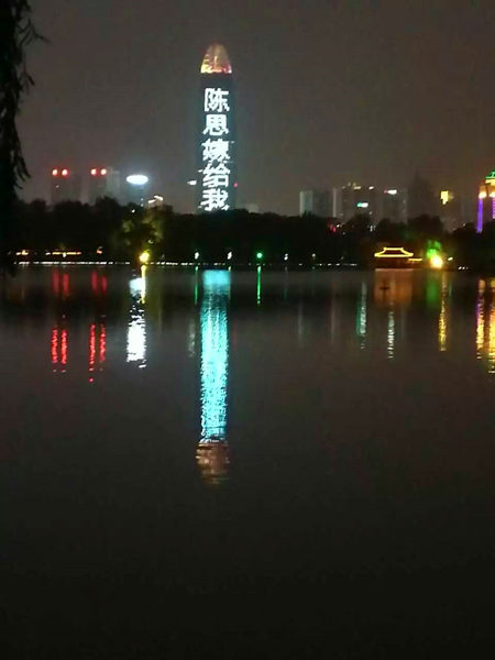 2016年5月20日晚20左右,位于濟南金街(jiē)“第一高樓”LED大屏上一條“陳思嫁給我”的真情表白火爆濟南泉城之夜。